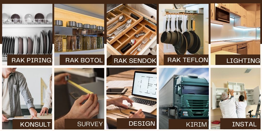 Finishing menyeluruh baik bagian luar maupun bagian dalam, karena banyak vendor yang hanya memberikan finishing di bagian luar yang terlihat saja, sehingga kitchen set terkesan kurang mewah dan gampang rusak.